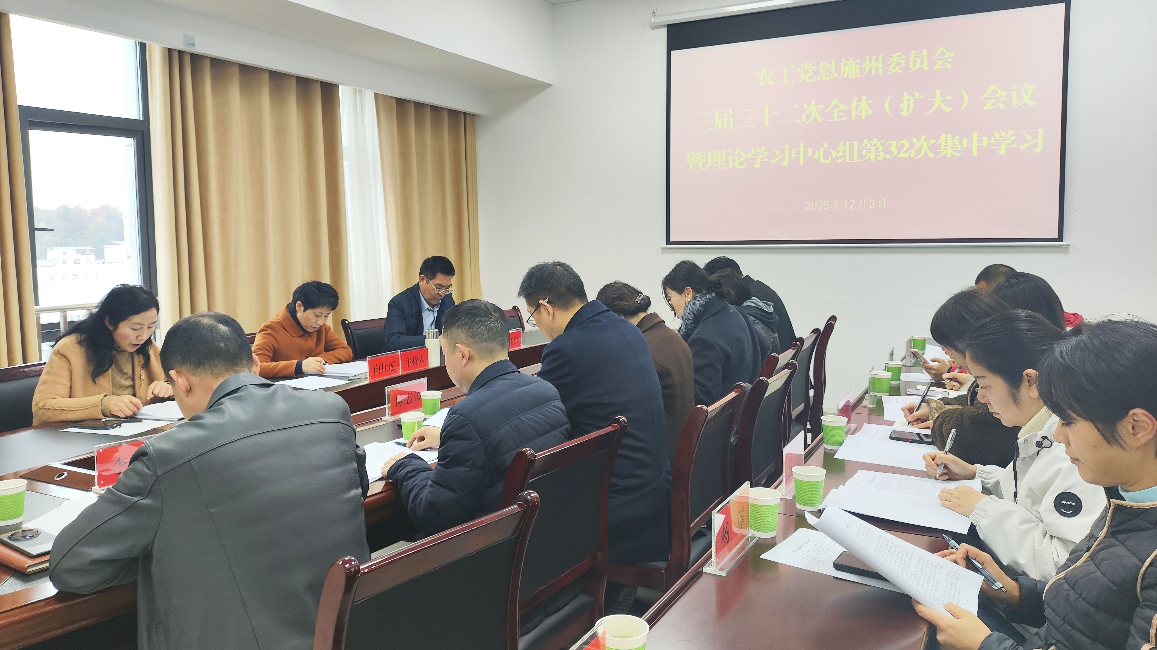 12月3日,农工党恩施州委会召开三届三十二次全委(扩大)会议暨理论学习中心组第32次集中学习。州委会主委向仕莲主持会议并讲话。副主委李玉山、张凤参加会议。州委会委员,各总支部、支部主委等20余人参加集中学习。