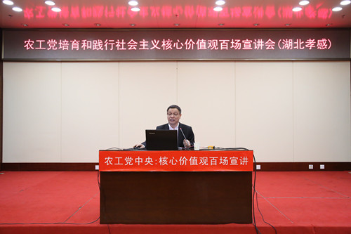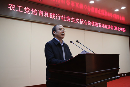 2016年2月22日-24日,农工党中央主办的“培育和践行社会主义核心价值观百场宣讲”在湖北开讲,第一场宣讲会于22日在湖北孝感举行,第二、三场将分别在湖北黄冈、武汉举行。宣讲会由农工党中央宣传部副巡视员刘保明主持。农工党湖北省委会专职副主委曾宪初在宣讲会上致辞,中共孝感市委常委、市委统战部部长、副市长周先来,孝感市政协副主席、农工党孝感市委会主委钱波东等出席了宣讲会。