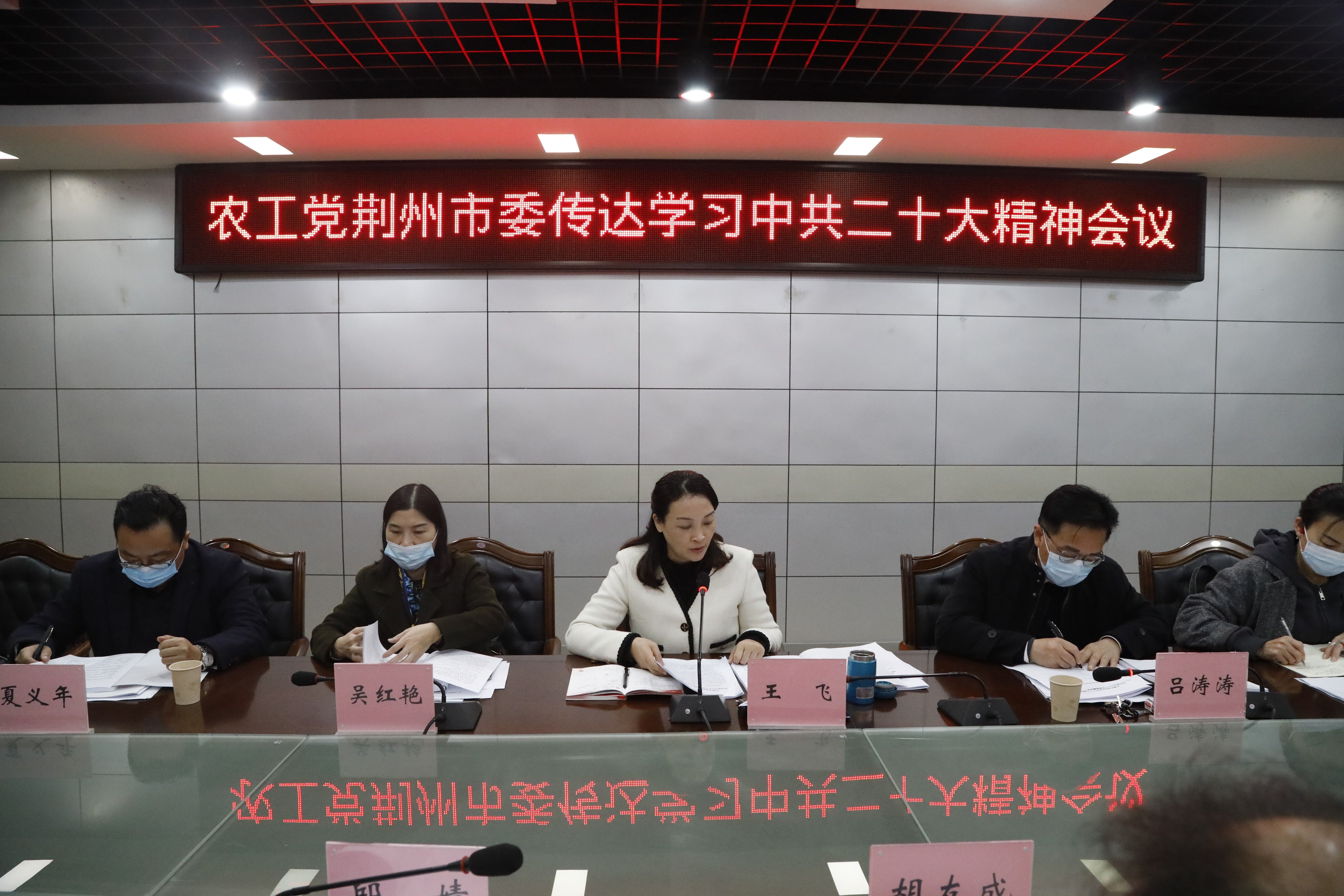 会议首先由农工党荆州市委会主委王飞同志传达中共二十大精神,带领全体市委委员学习了市委书记吴锦、市长周志红在全市县处级领导干部学习贯彻党的二十大精神集中轮训班上作的辅导报告,传达了市委统战部关于各民主党派学习二十大精神的部署要求;会议研究布置了市委会评先工作,研究通过了市委会在市政协六届二次大会上的发言材料以及2022年下半年新党员名单;会议还研究了其他事项。