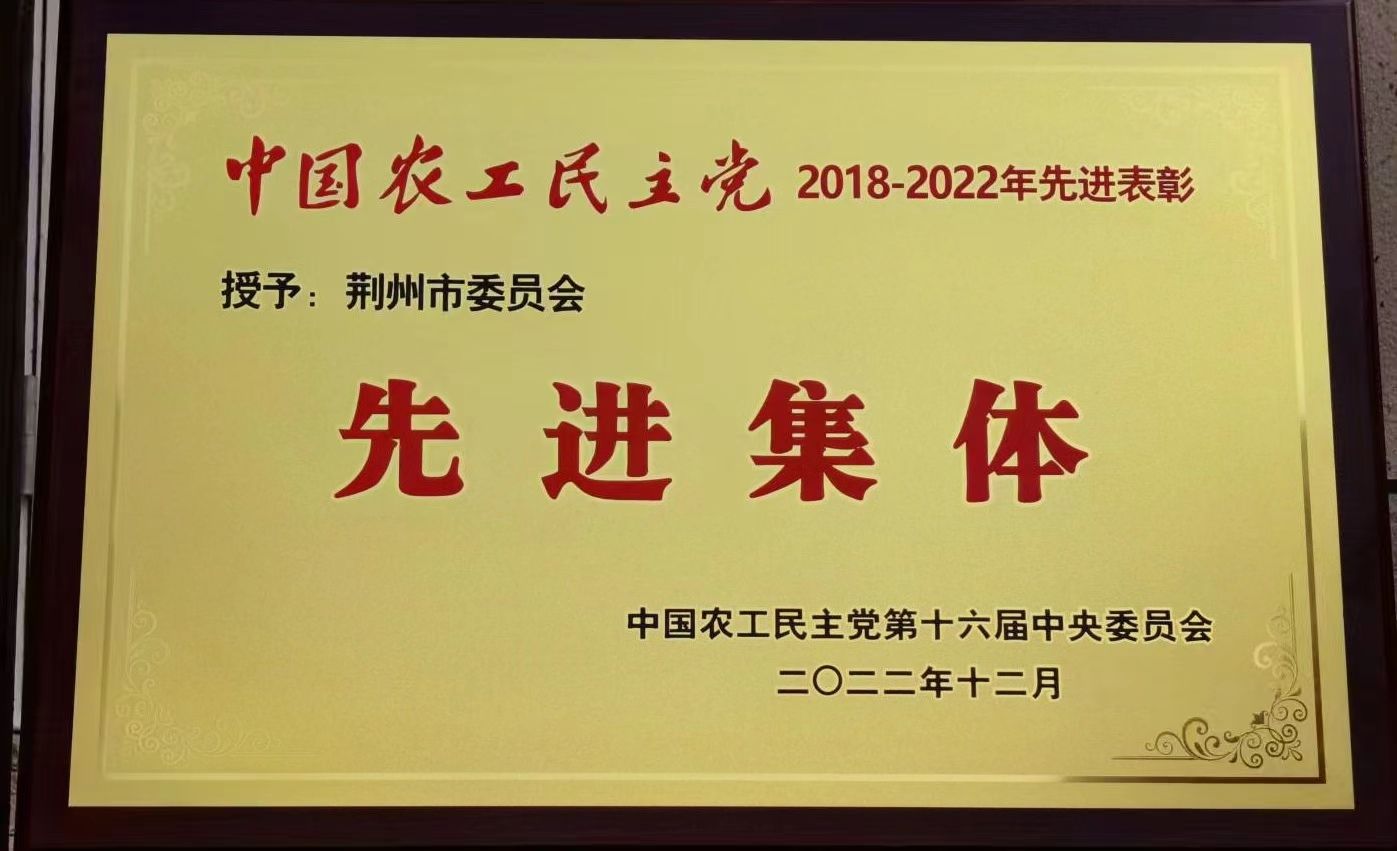 农工党荆州市委会主委、荆州市招商促进中心主任王飞参加会议。会上,农工党荆州市委会被农工党中央授予“2018-2022年先进集体”荣誉称号。