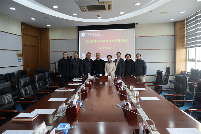 2023年12月27日上午,省政协常委、农工党湖北省委会专职副主委黄惠宁一行赴中南财经政法大学统战部就农工党中南财经政法大学委员会组织建设等情况开展调研座谈。中南财经政法大学党委副书记陈狮莅临现场,对农工党省委会调研组一行的到来表示欢迎。中南财经政法大学党委统战部部长高碧峰、副部长袁伟,省委会组织部部长宋亚琼出席会议。会议由高碧峰同志主持。