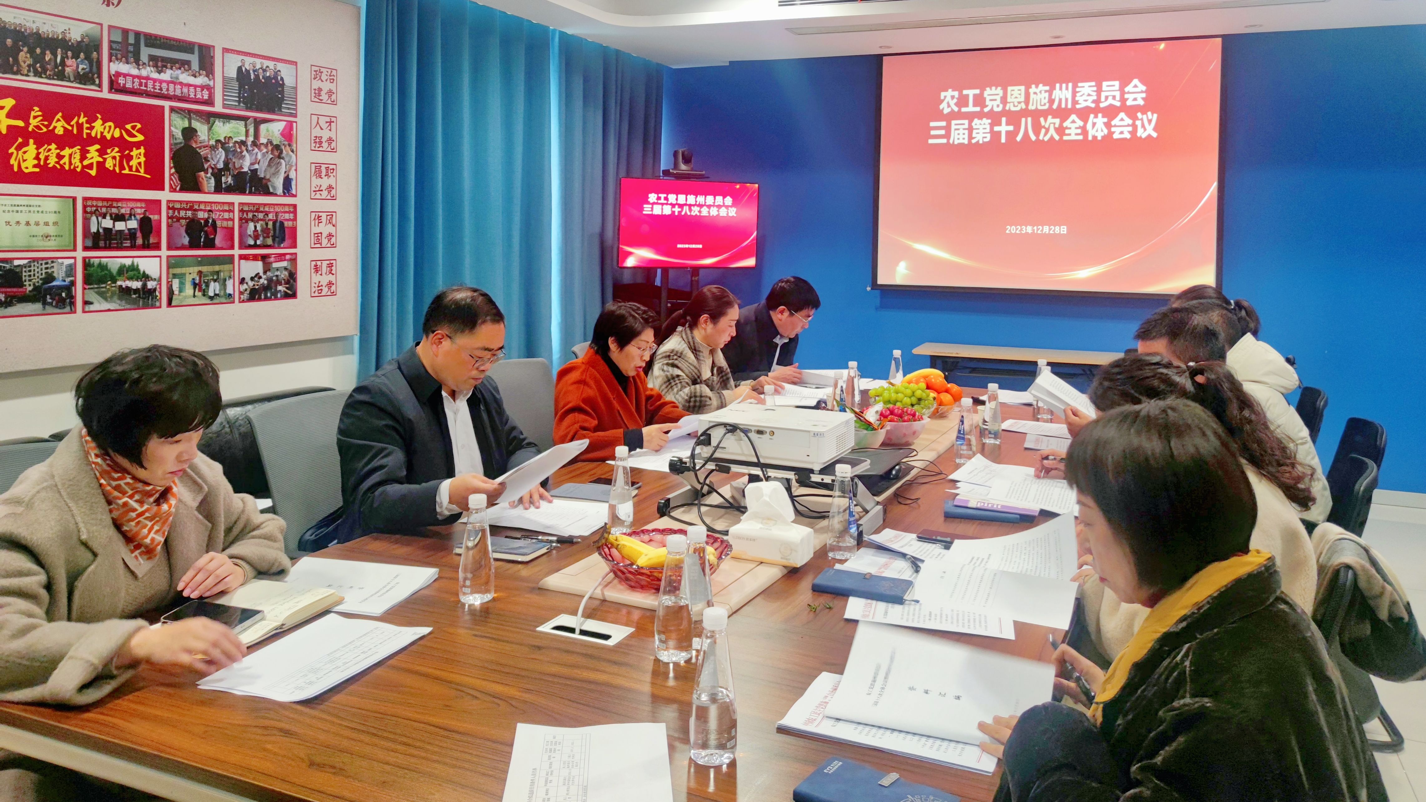 12月28日,农工党恩施州委员会召开三届第十八次全体会议暨理论中心组第18次集中学习。主委向仕莲主持会议。专职副主委王克全、副主委李玉山、州委会委员、恩施市总支和各支部负责人参加会议。