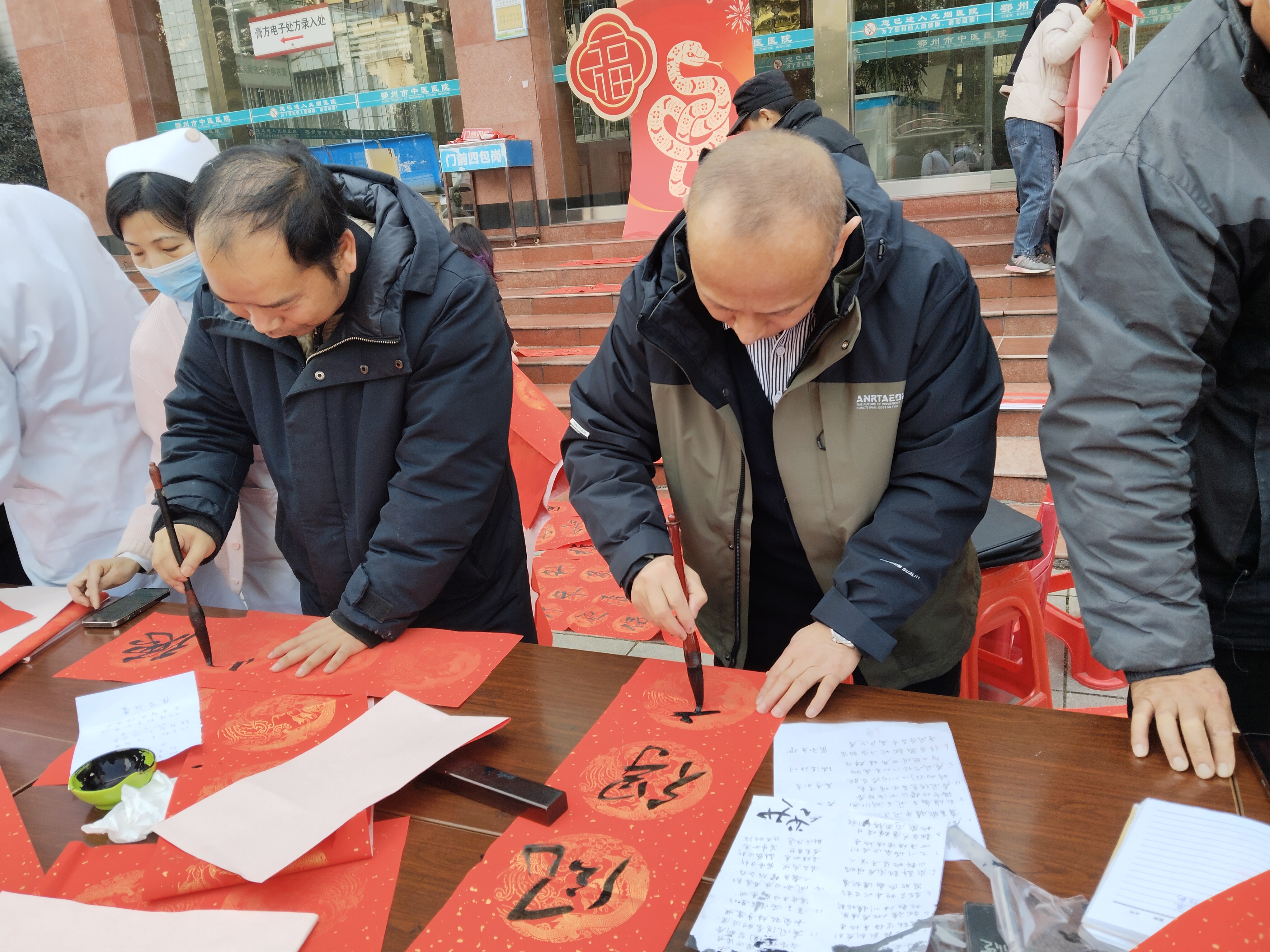 活动期间,鄂州市中医院领导也挥洒笔墨,将美好的祝愿融入一副副洋溢着喜庆与吉祥的春联之中,让患者和医护人员切实感受到了医院的温暖与关怀。活动共计赠送春联500余幅,从“春风送暖入屠苏”到“家和万事兴”,每一副春联都承载着书法家们对患者和医护人员的祝福。