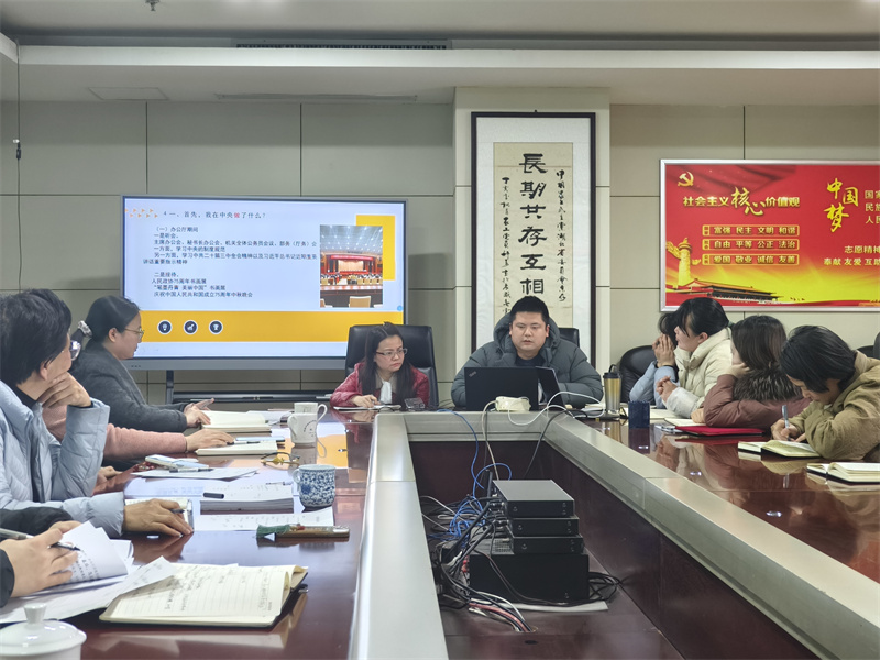 2月13日,农工党湖北省委会机关开展双周学习,专题学习中共湖北省委近期重要会议精神。省委会专职副主委黄惠宁出席会议并讲话,全体机关干部职工参加学习。