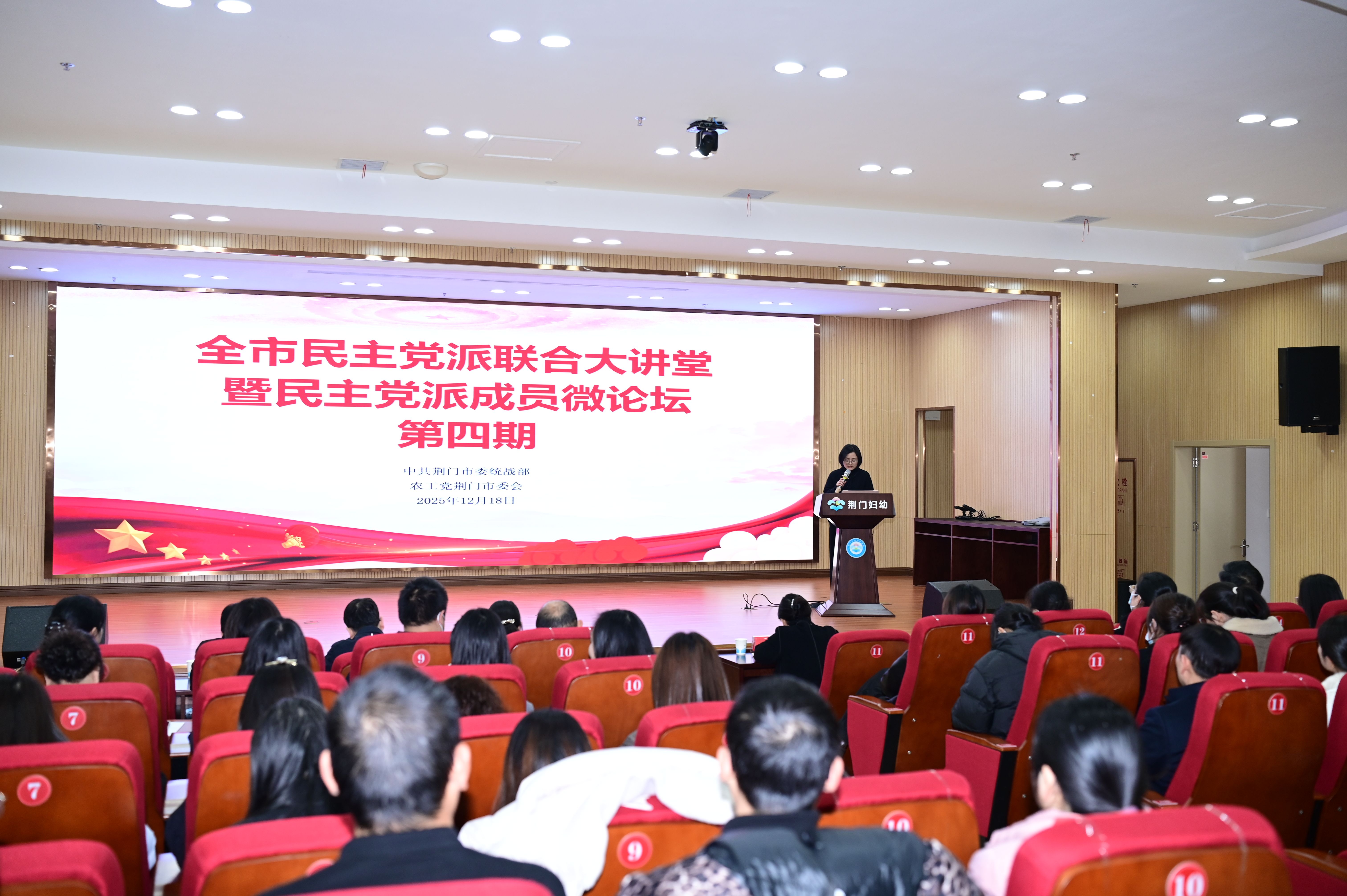 12月18日,全市民主党派、无党派人士在荆门市妇幼保健院大型会议室举行民主党派联合大讲堂第四期活动。农工党市委会副主委、东宝区政协副主席、市妇幼保健院院长李堃主持活动。